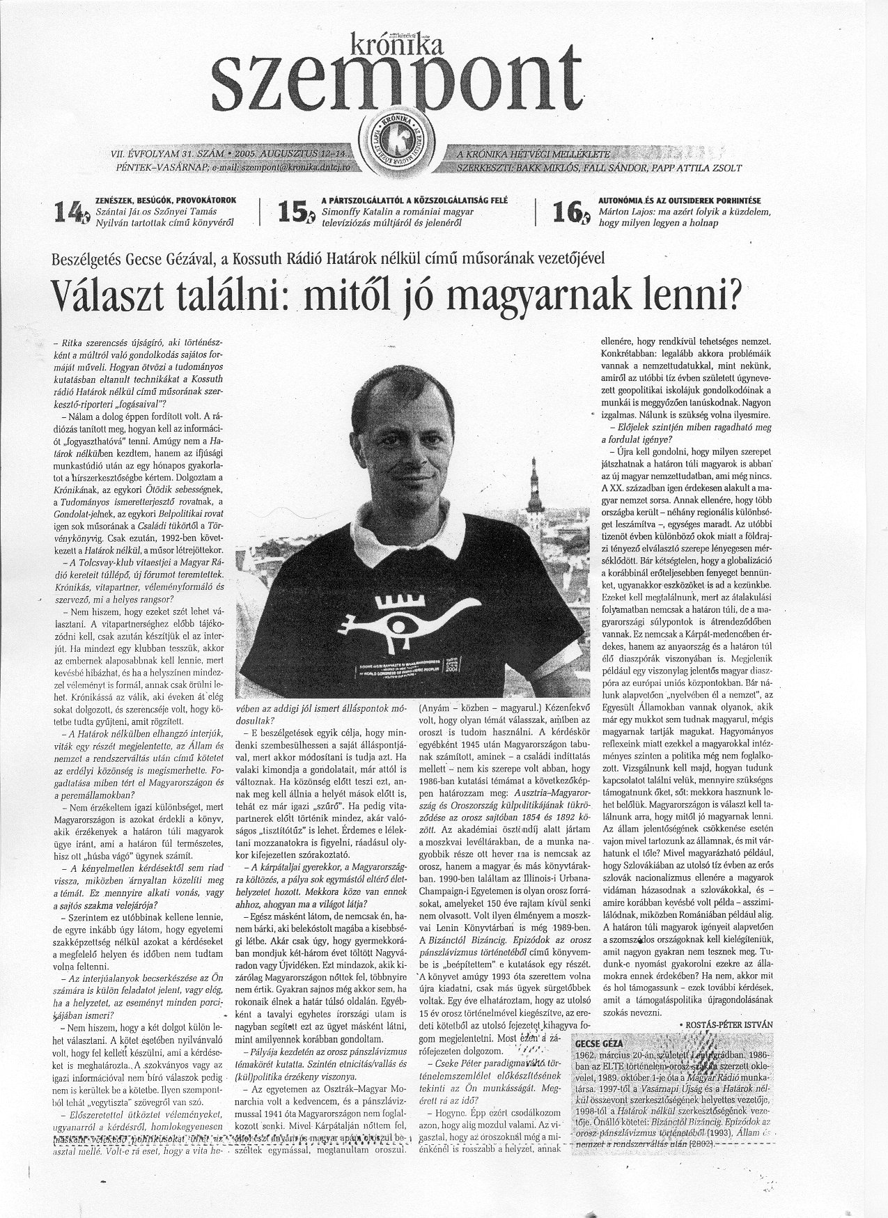 2005.augusztus 12-14., péntek-vasárnap, a Szempont rovatban (13.oldal)