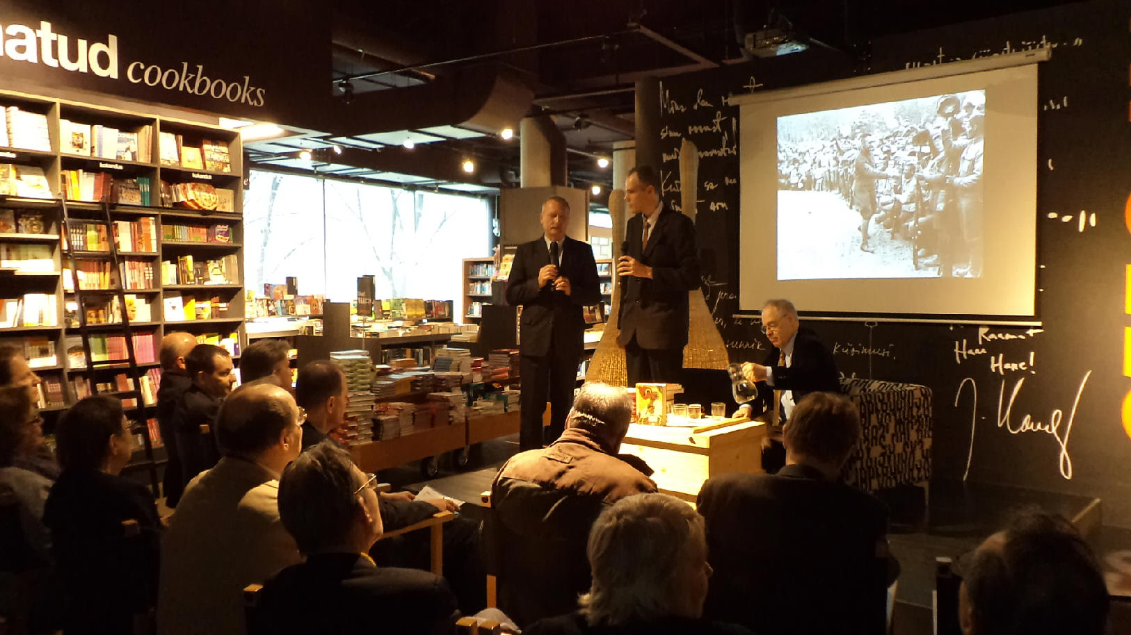 Tallinn belvárosának központi könyvesboltjába.