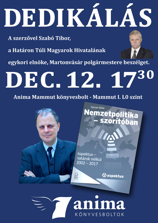 2017. december 12-én kedden, 17.30-kor az Anima Mammut-beli könyvesboltjában szervezünk találkozót. A könyvesbolt az üzletközpont Széll Kálmán tér felőli (1024 Budapest, Lövőház utca 2-6.) első épületének az alagsori szintjén (tehát a -1 szinten, amit földszintnek is neveznek, mivel magasított az üzletközpont bejárati része) található meg.