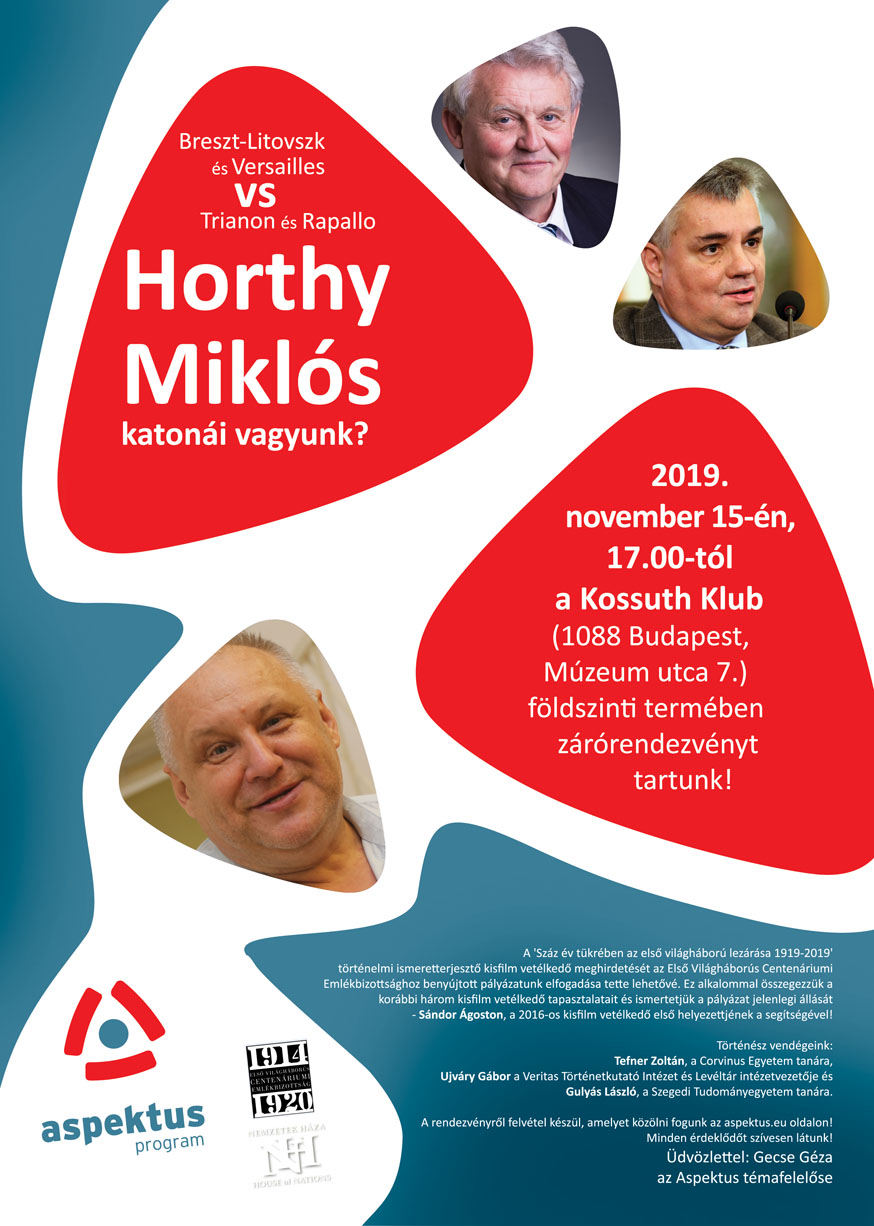 2019. november 15-én 17 órától a Kossuth Klub (1088 Budapest, Múzeum utca