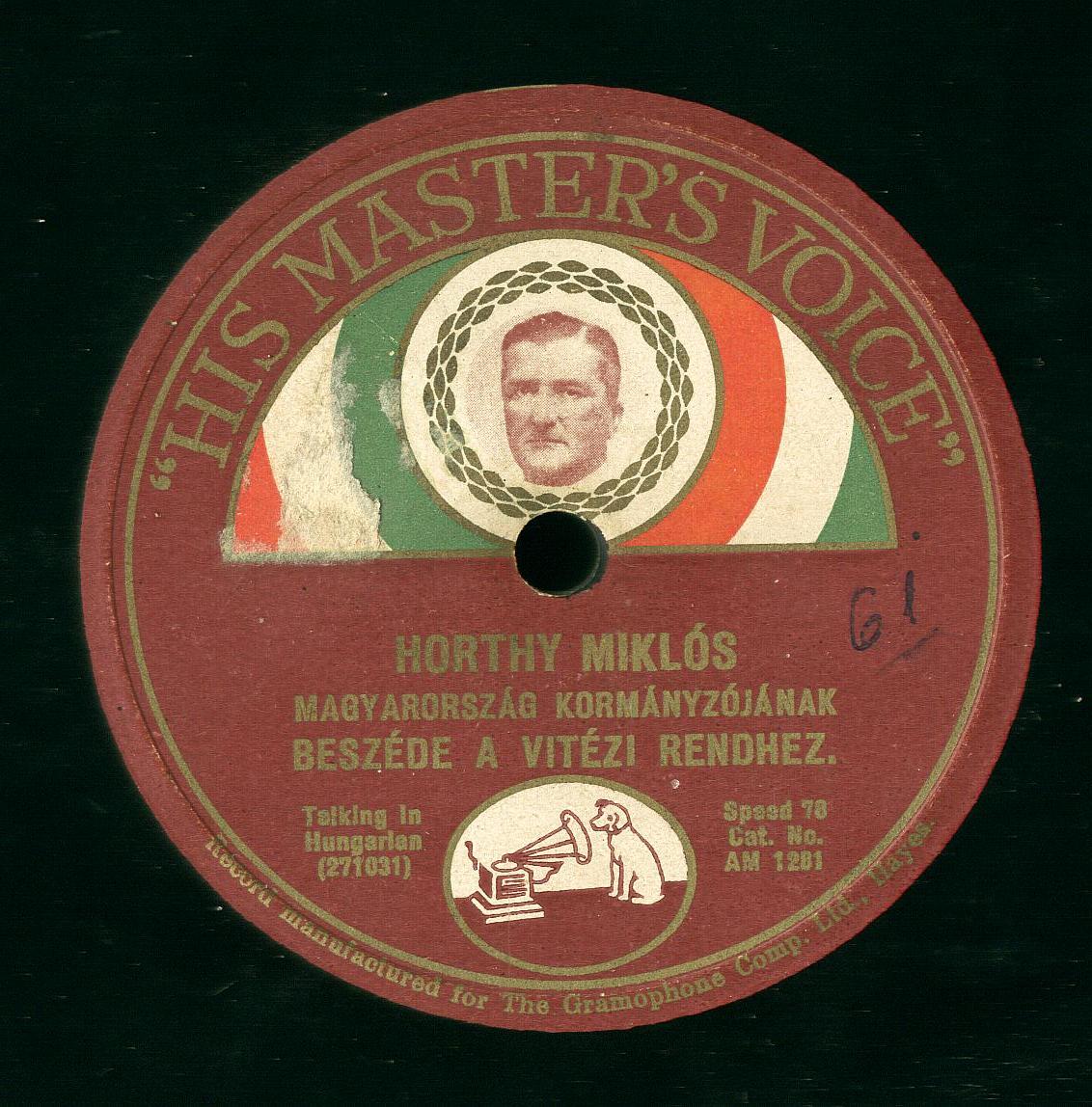 Keressük Bethlen Istvánnak, Magyarország egykori miniszterelnökének azt a beszédét, amelyet 1928 szeptemberében jelentetett meg a His Master’s Voice