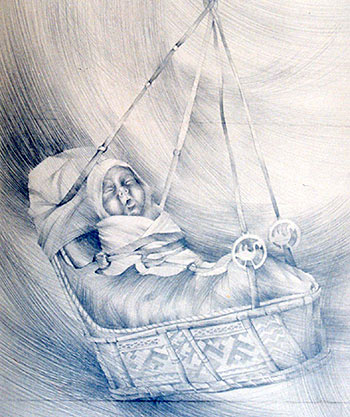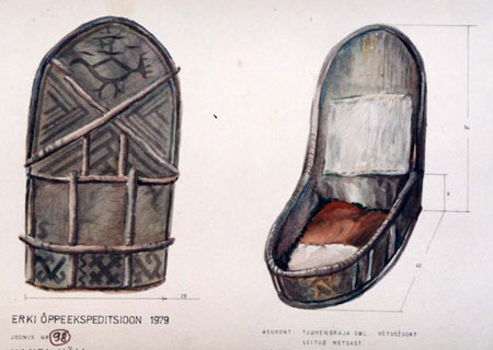 Az egyik hanti gyermek bolcsőjét néprajzkutatók pillantották meg, akik le is rajzolták, méghozzá a következőképpen: